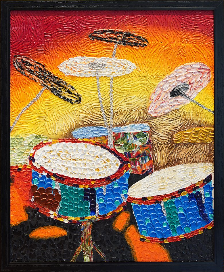 This painting captures the pulse of music in its purest form β bold, dynamic, and alive with motion. The drums stand poised mid-beat, their vibrant surfaces echoing the intensity, joy, and energy of rhythm in motion. Each textured stroke feels percussive, translating sound into color and form, carrying the vitality of music beyond silence.