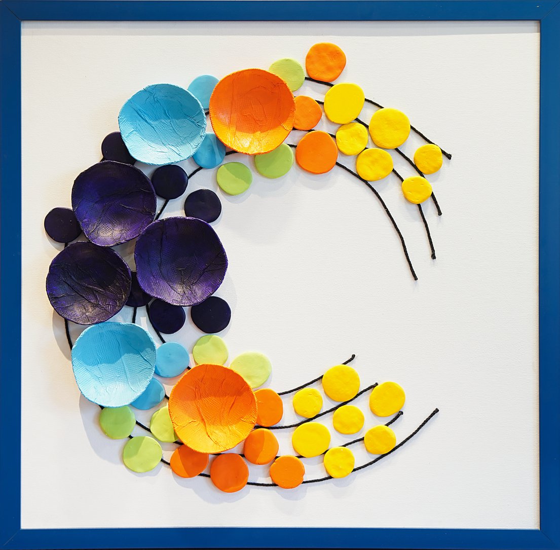 This painting moves like a gentle breath in motion, where circles gather and drift apart, holding light as if it were something tender and alive. Each form seems to pulse softly, guided by an invisible rhythm that feels both playful and serene.